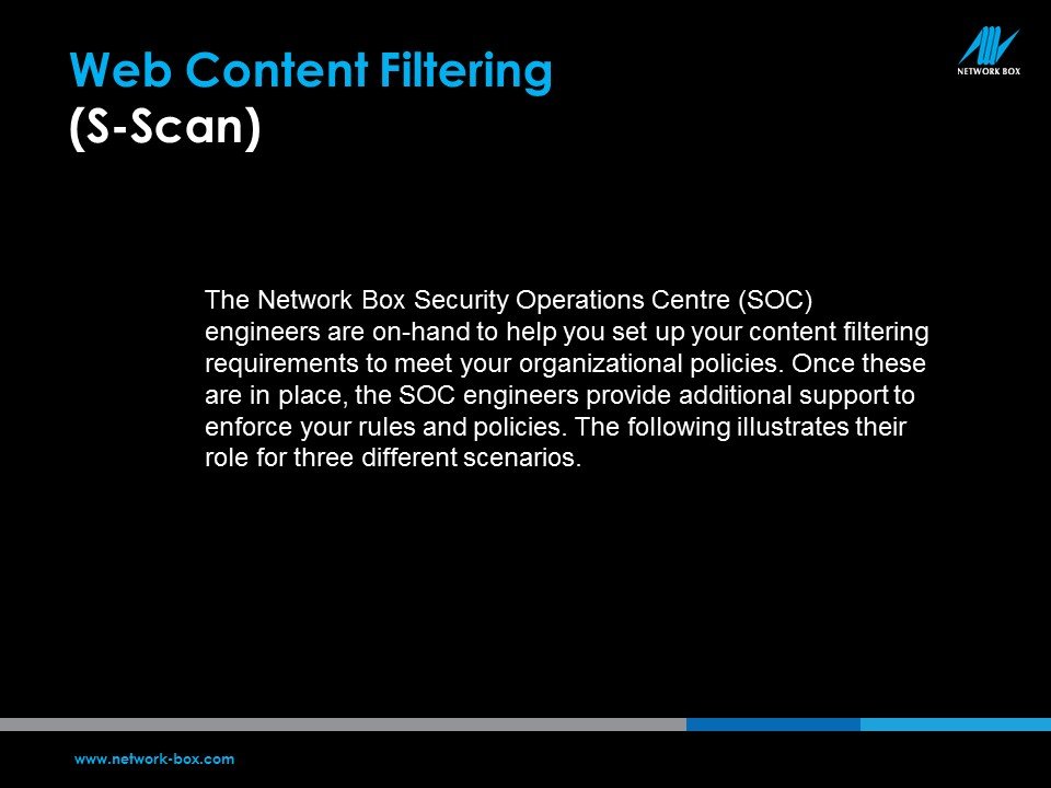 Network Box可以帮助您管理组织的网络浏览策略。然而,最终设置完全在您的控制之下。使用S-Scan,您还可以: